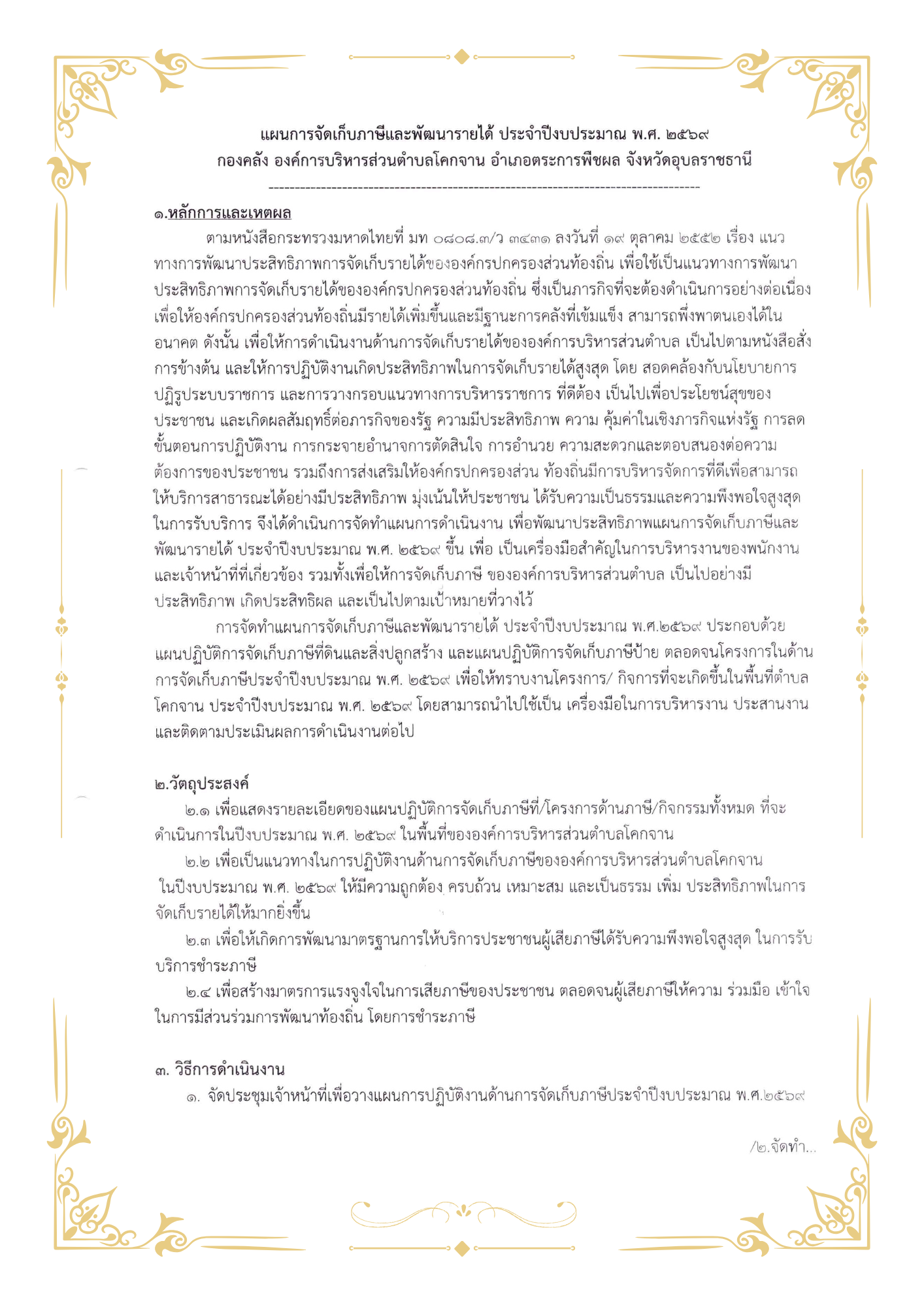แผนการจัดเก็บภาษีและพัฒนารายได้ ประจำปีงบประมาณ2569