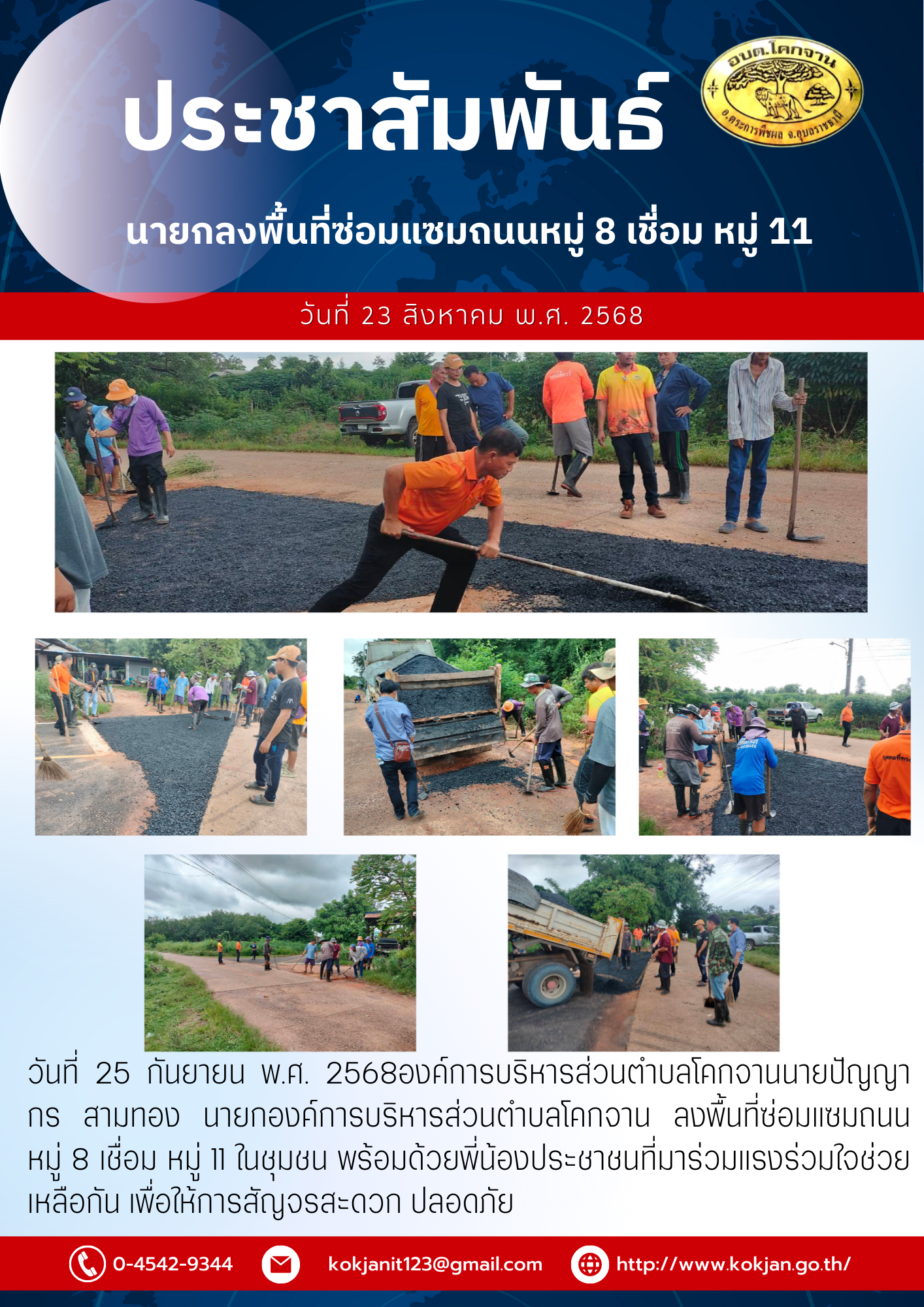 ตรวจสอบถนนเส้น หมู่ที่ 1 บ้านโคกจาน หมู่ที่ 8 บ้านน้อยหมู่ที่ 11 บ้านโนนยาง (15 ก.ย. 2568)
