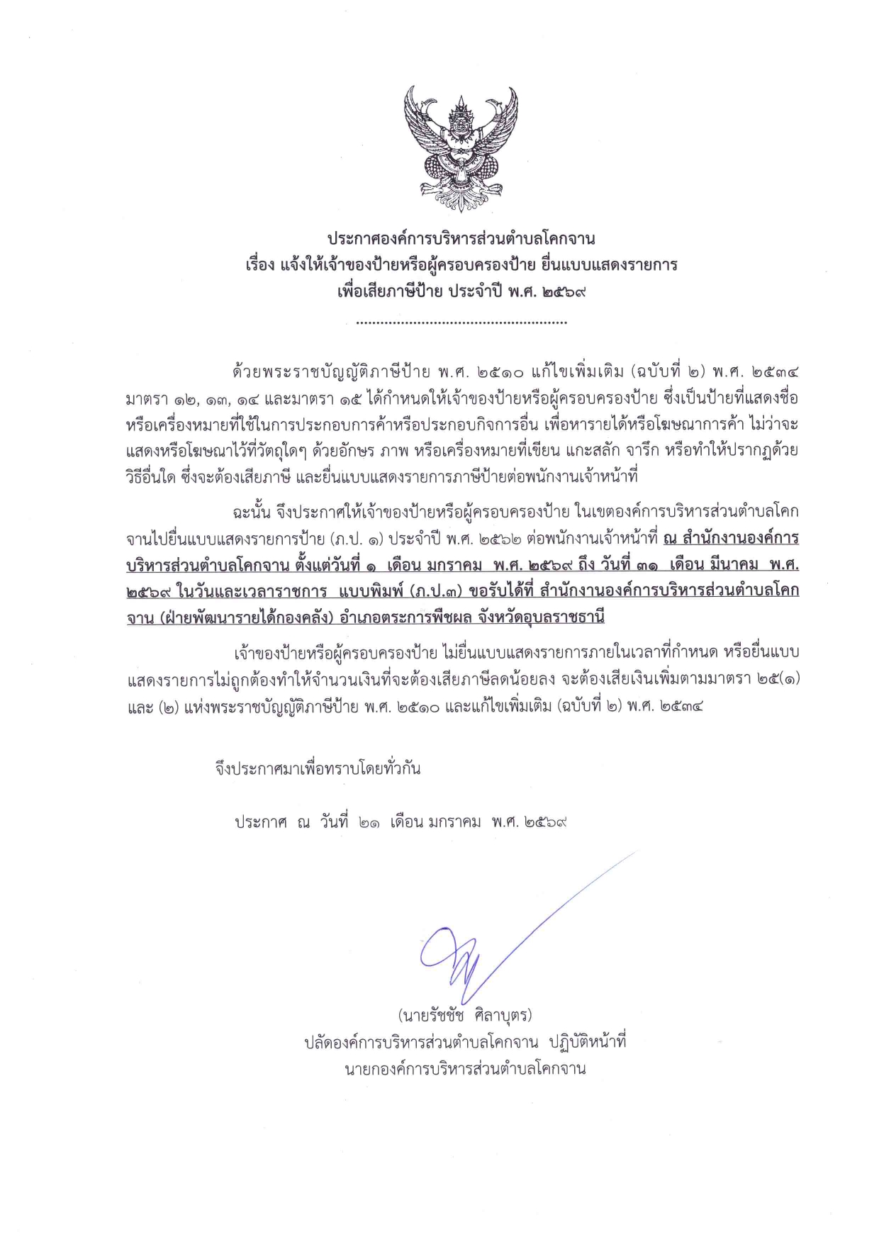กำหนดการการชำระภาษีภาษีป้าย ประจำปี 2569