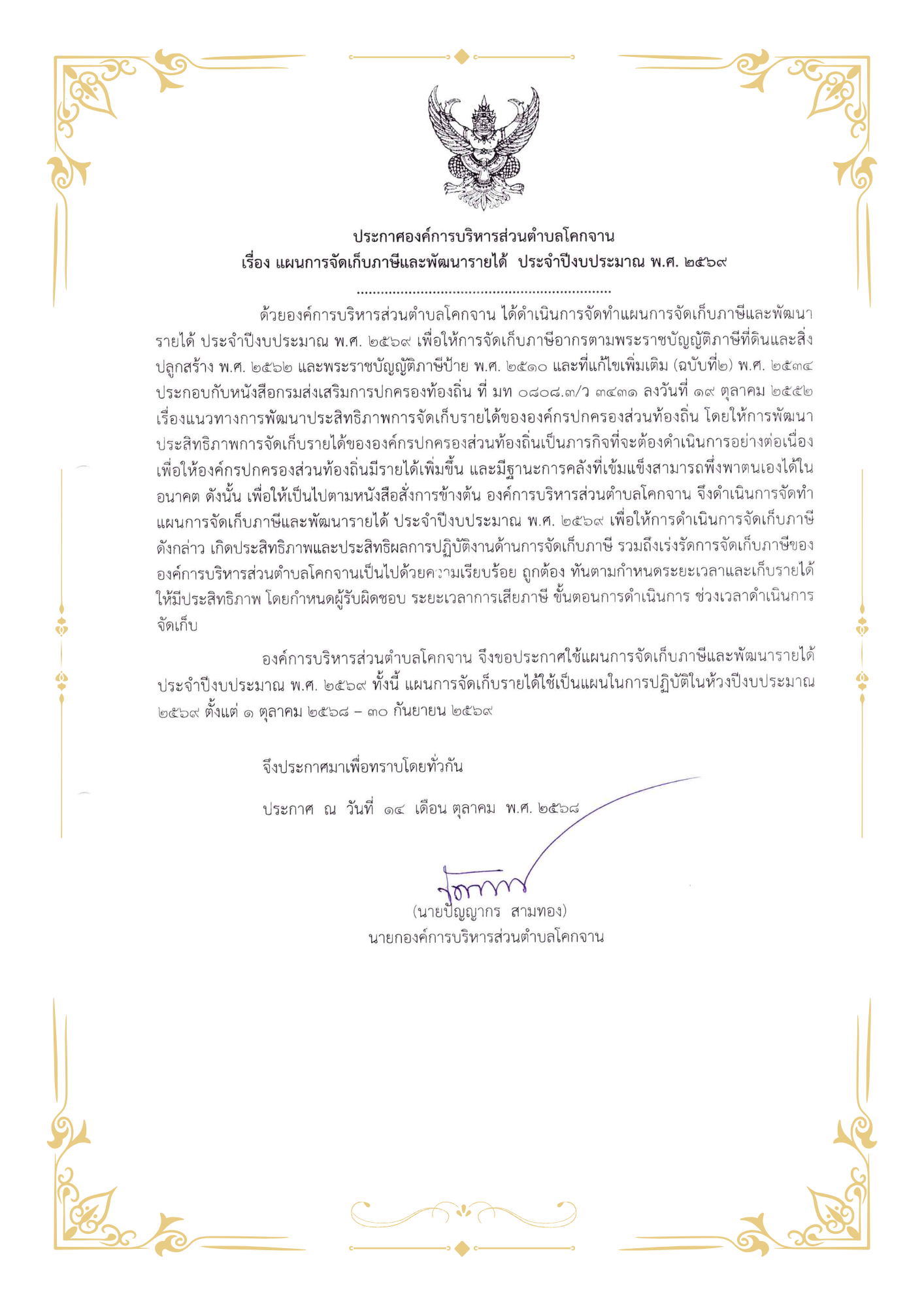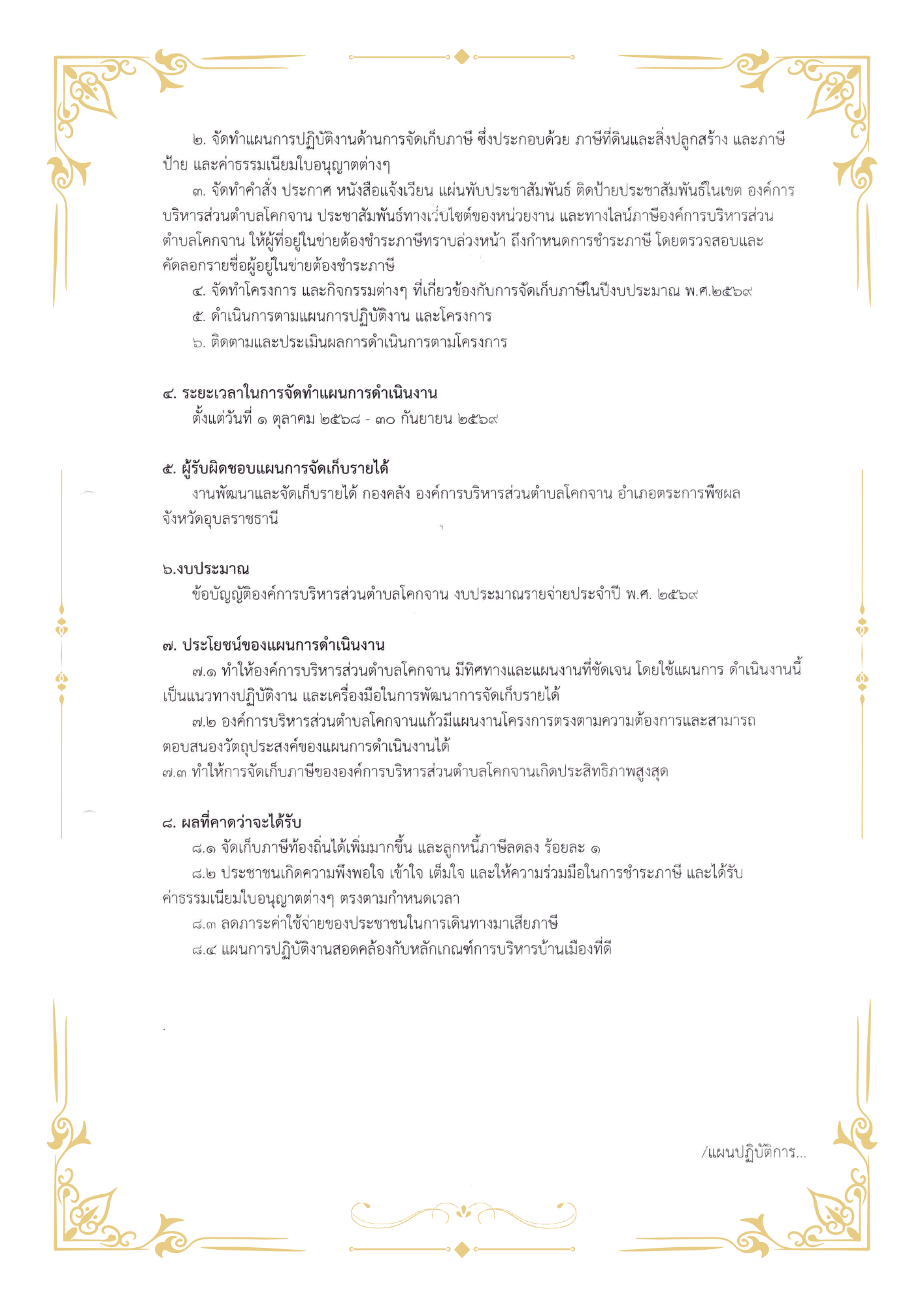 แผนการจัดเก็บภาษีและพัฒนารายได้ ประจำปีงบประมาณ2569